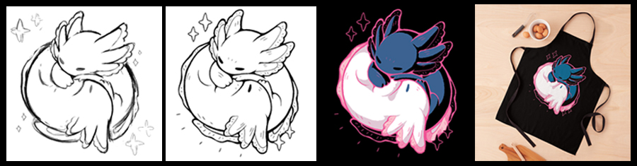 Before starting this step I ask the client what kind of coloring/color scheme they would like me to use, then I show the finished illustration/design in its entirety